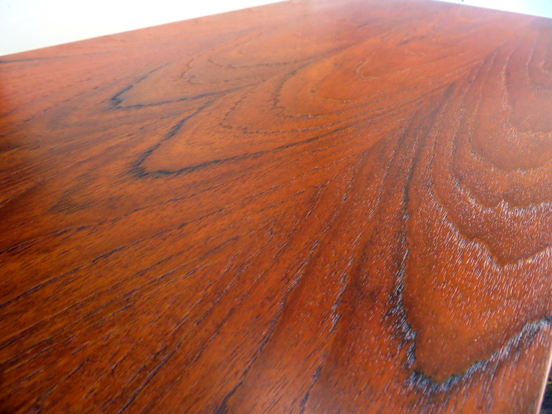 正面側は木目が綺麗な部位が使われていますが、経年のクスミでぼやけていましたので剥離し、削り直した後にオイルとワックスを施工致しました。