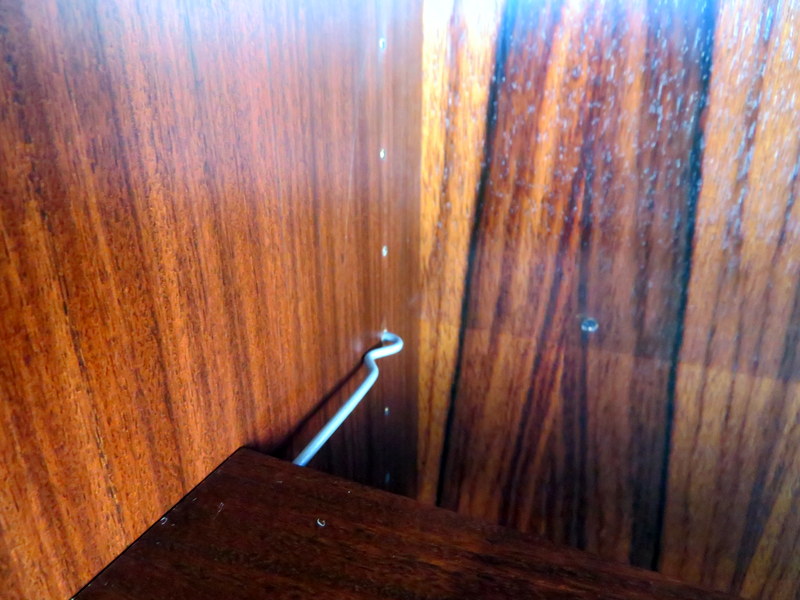 塗膜はにローズの艶感を出すためにニス仕上げとなりますので、基本的にはクリーニングや塗膜表面を整えるメンテナンスとなりますが、背板は一度取り外して隙間の埃を取り除いてから組み付けを行っています。